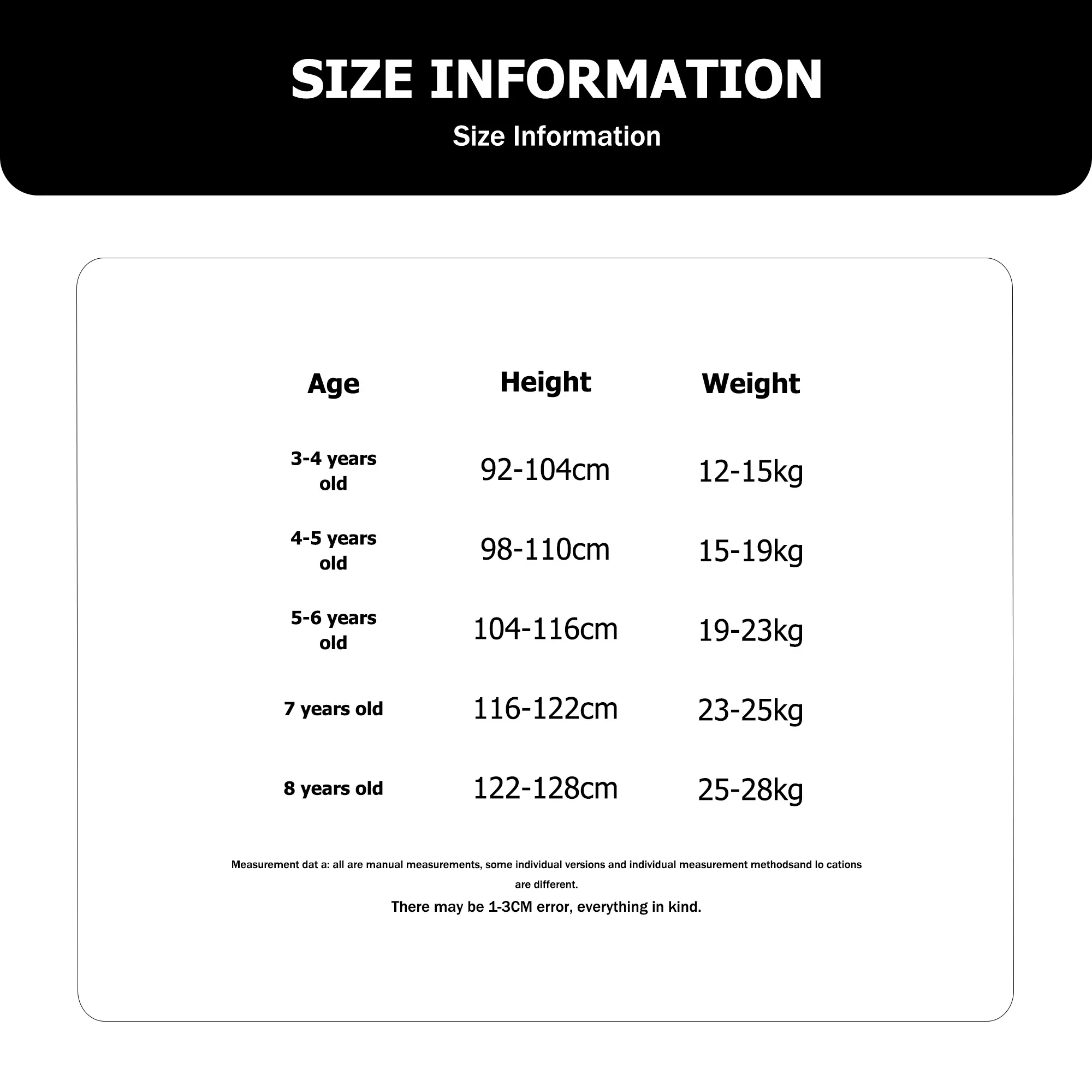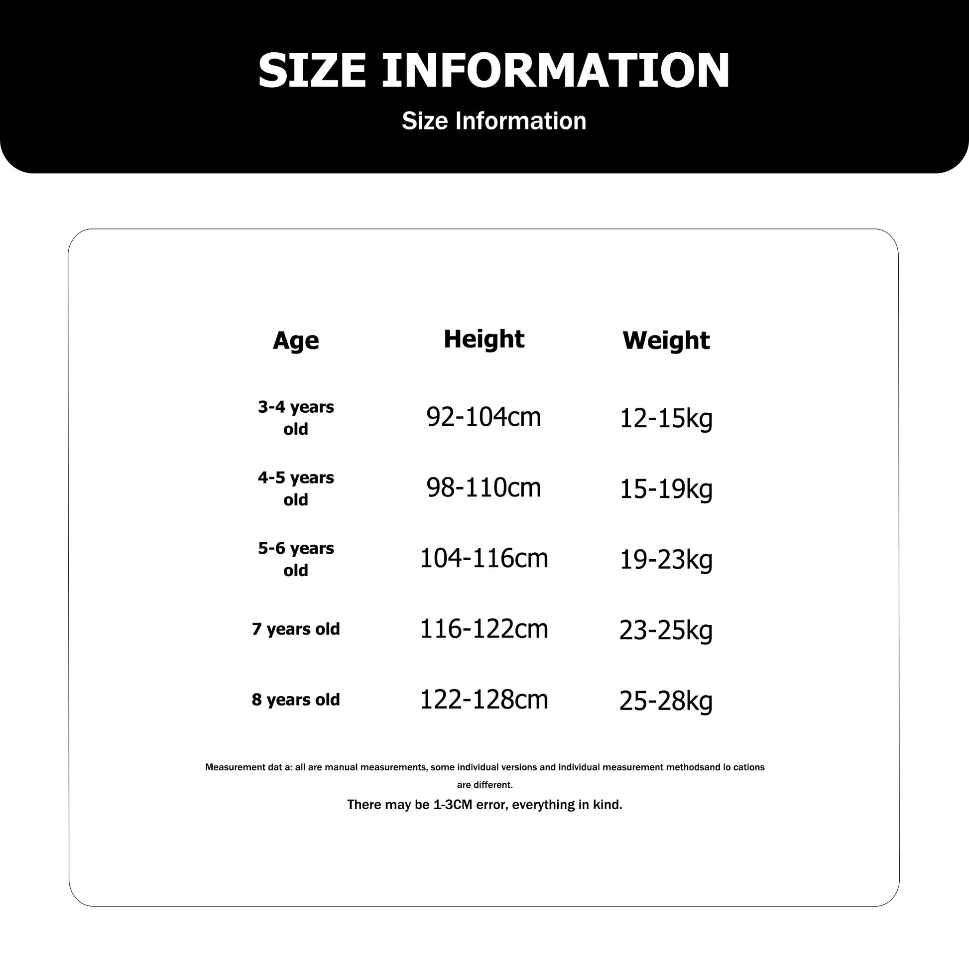size_info: {"sizeInfoList":[{"length":{"cm":"44","inch":"17.32"},"size":"3-4Y","vid":-3},{"length":{"cm":"46","inch":"18.11"},"size":"4Y-5Y","vid":-4},{"length":{"cm":"48","inch":"18.90"},"size":"5Y-6Y","vid":-5},{"length":{"cm":"51","inch":"20.08"},"size":"7Y","vid":-6},{"length":{"cm":"53","inch":"20.87"},"size":"8Y","vid":-7}]}